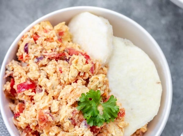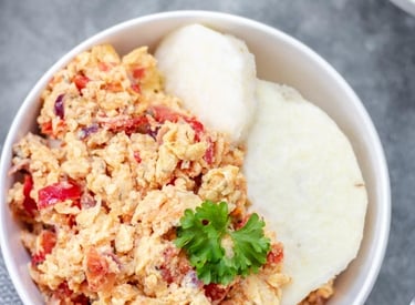 Slow-cooked, creamy mashed black-eyed beans paired with a rich, caramelized onion and pepper sauce. Seasoned with a blend of traditional spices for authentic flavor, it’s perfect with soft bread rolls, fried plantains, or rice.